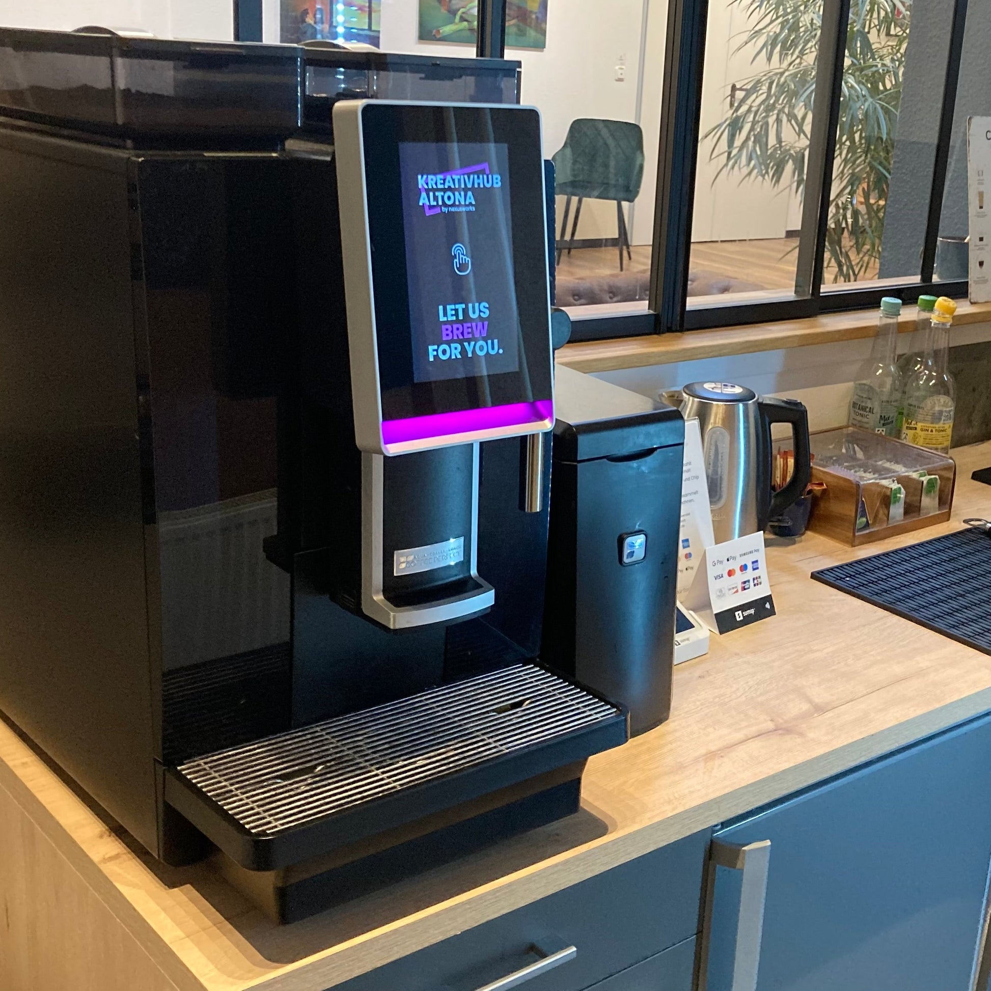 - Vollautomatische, vegane Barista Kaffeemaschine mit Hafermilch in unserer Lobby
